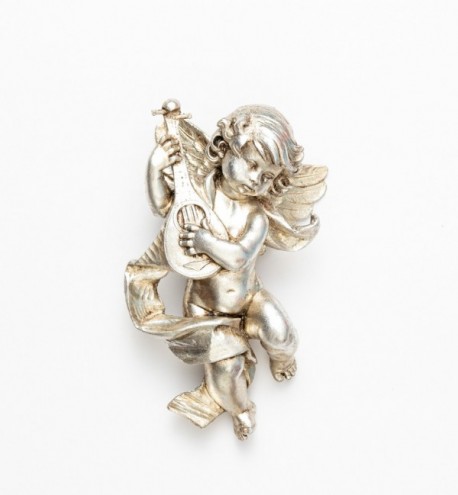 Angelo con mandolino (365) argento foglia cm.22