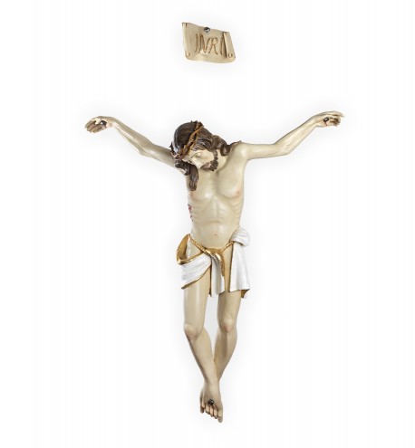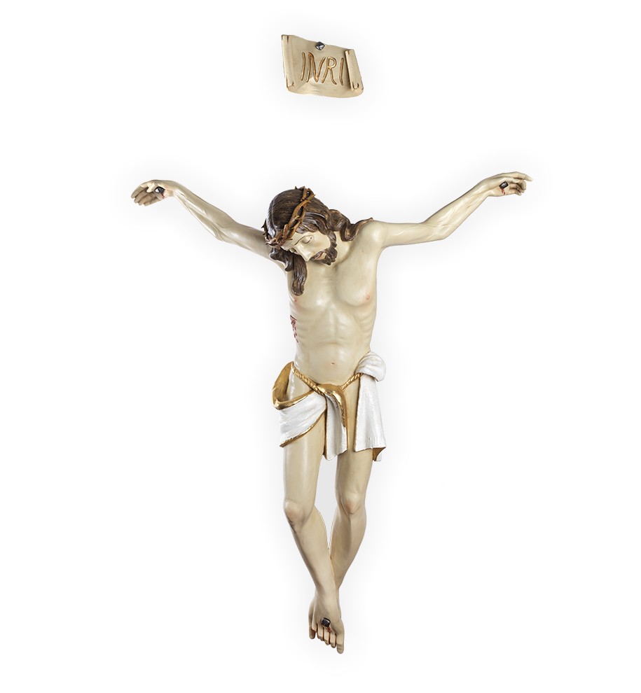 Questa rappresentazione del corpo di Cristo in resina è pensata per chi cerca un elemento devozionale di grande impatto ed è pensata per spazi ampi come cappelle o altari. Con i suoi 135 cm di altezza e ai dettagli dipinti a mano, offre un effetto realistico che cattura lo sguardo.