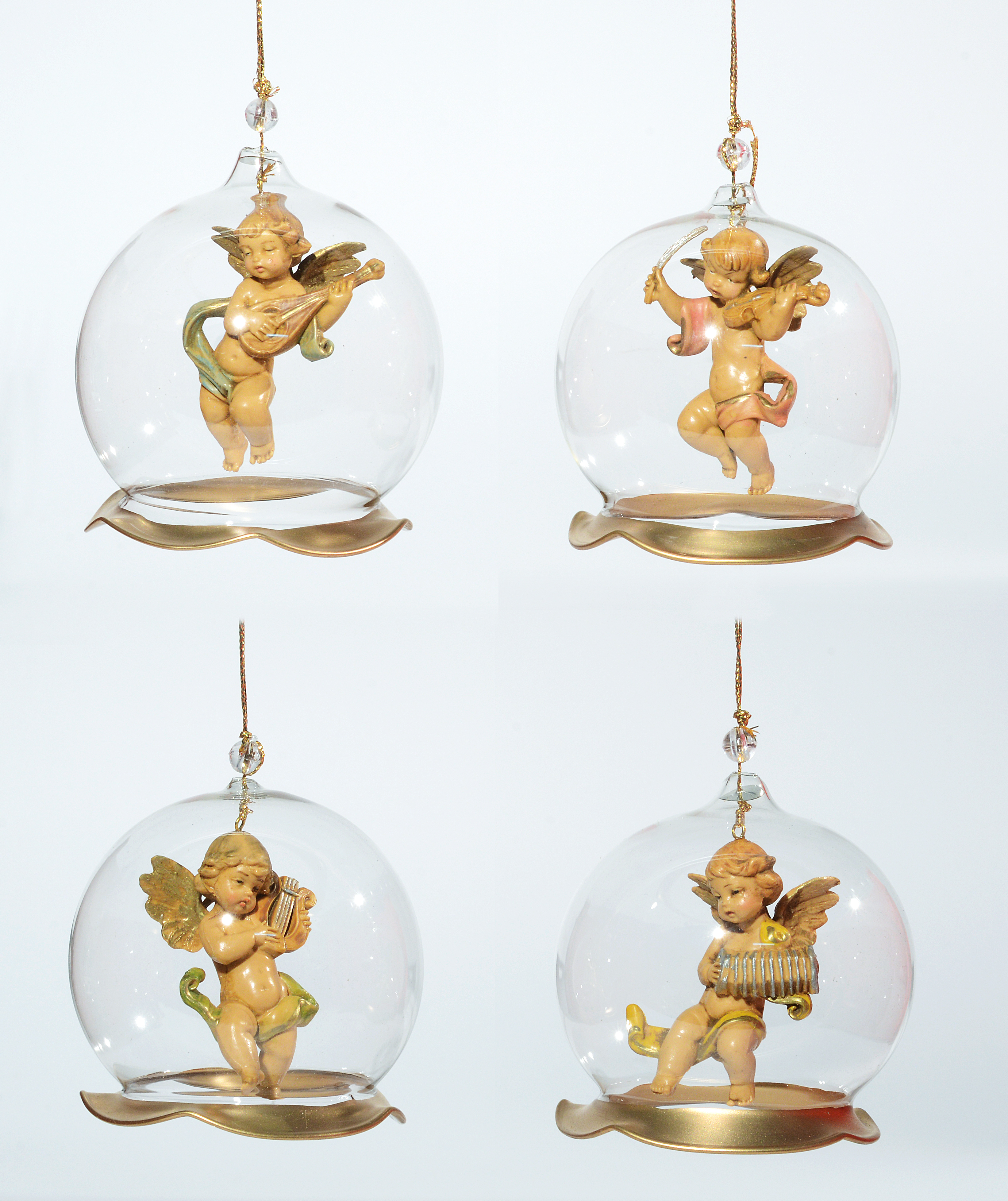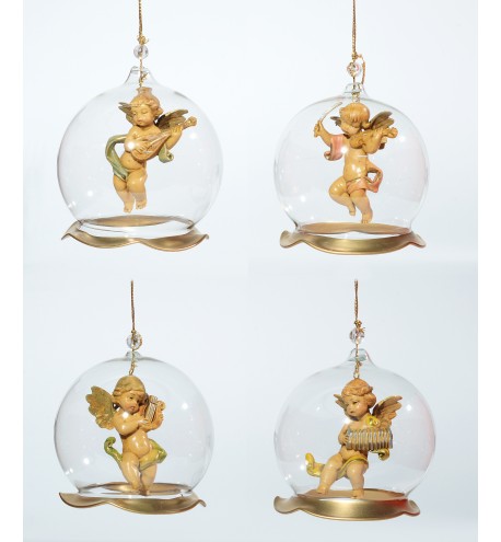 Assortimento 4 ornamenti in vetro soffiato da appendere (V1) cm.8