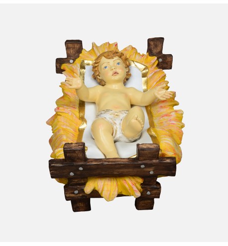 Porta a casa la serenità e la bellezza del Bambinello Gesù nella culla, una statua raffinata pensata per arricchire il tuo presepe con un tocco di autenticità e devozione.