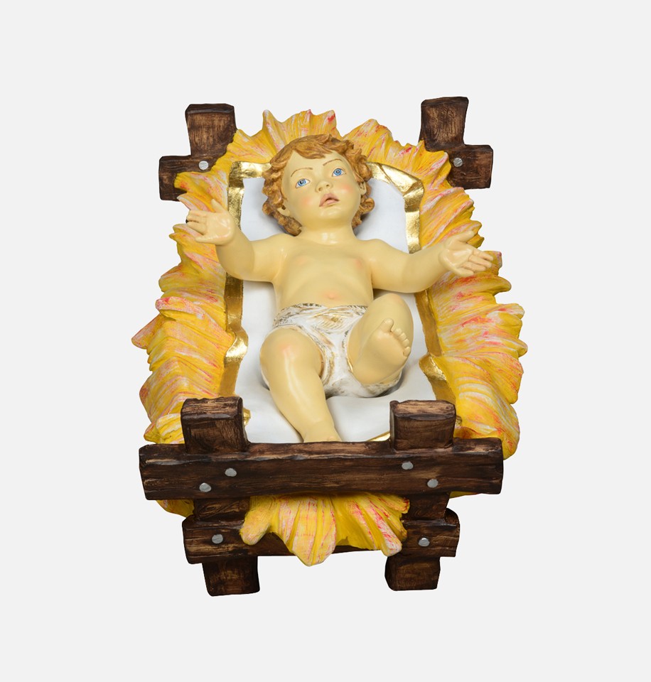 Realizzata in resina polivinilica di alta qualità e dipinta a mano, questa rappresentazione del Bambinello è curata nei minimi dettagli, esaltando le espressioni delicate e la resa cromatica unica. Perfetta per presepi di grandi dimensioni, è un pezzo immancabile per collezionisti e appassionati delle tradizioni natalizie.