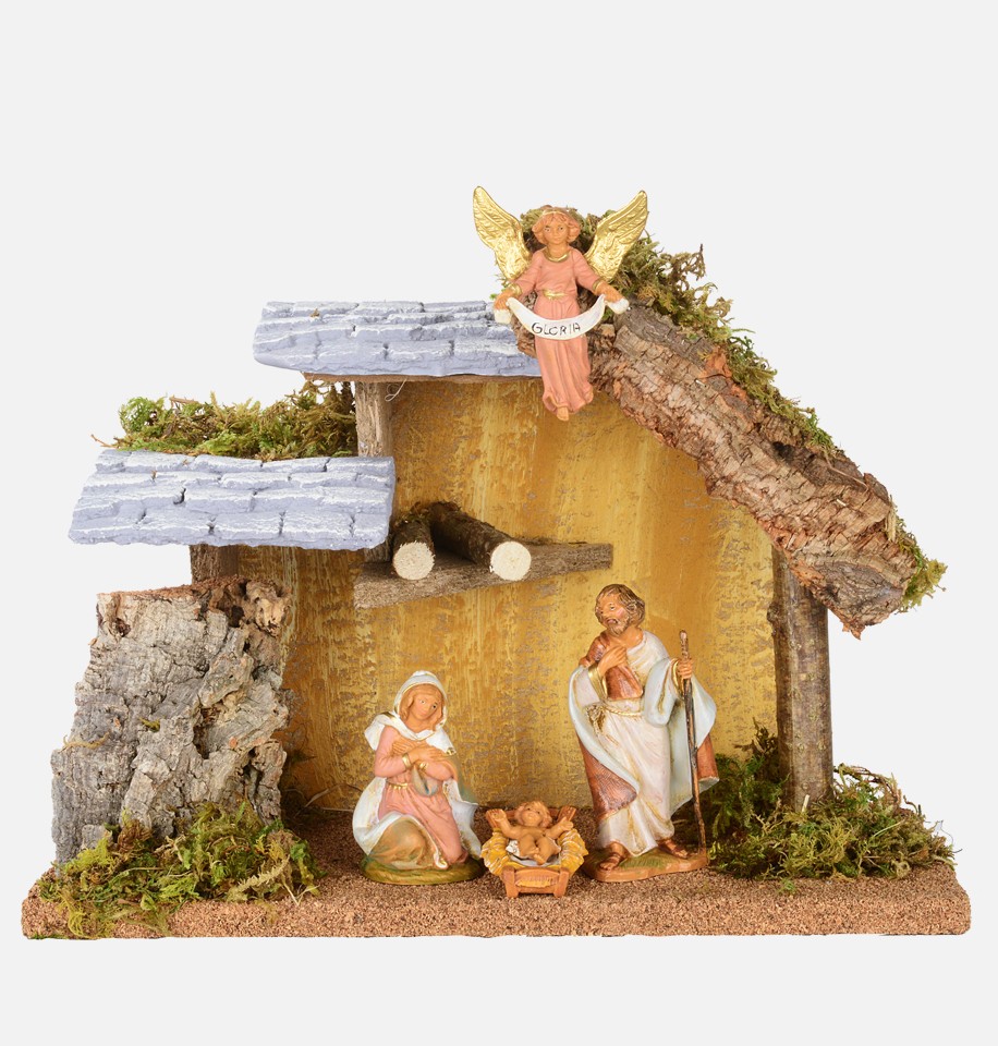 Capanna n.247/L con 4 pezzi per presepe cm.12