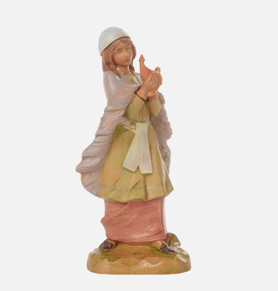 La pastorella per presepe è una figura graziosa che aggiunge un tocco di femminilità e dolcezza alla tua scena della Natività. Questa statuina, realizzata in PVC e pitturata a mano, rappresenta una giovane pastorella con dettagli accurati che donano realismo e vivacità al tuo presepe.