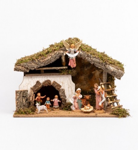 Capanna n.652/L con 10 pezzi per presepe cm.19