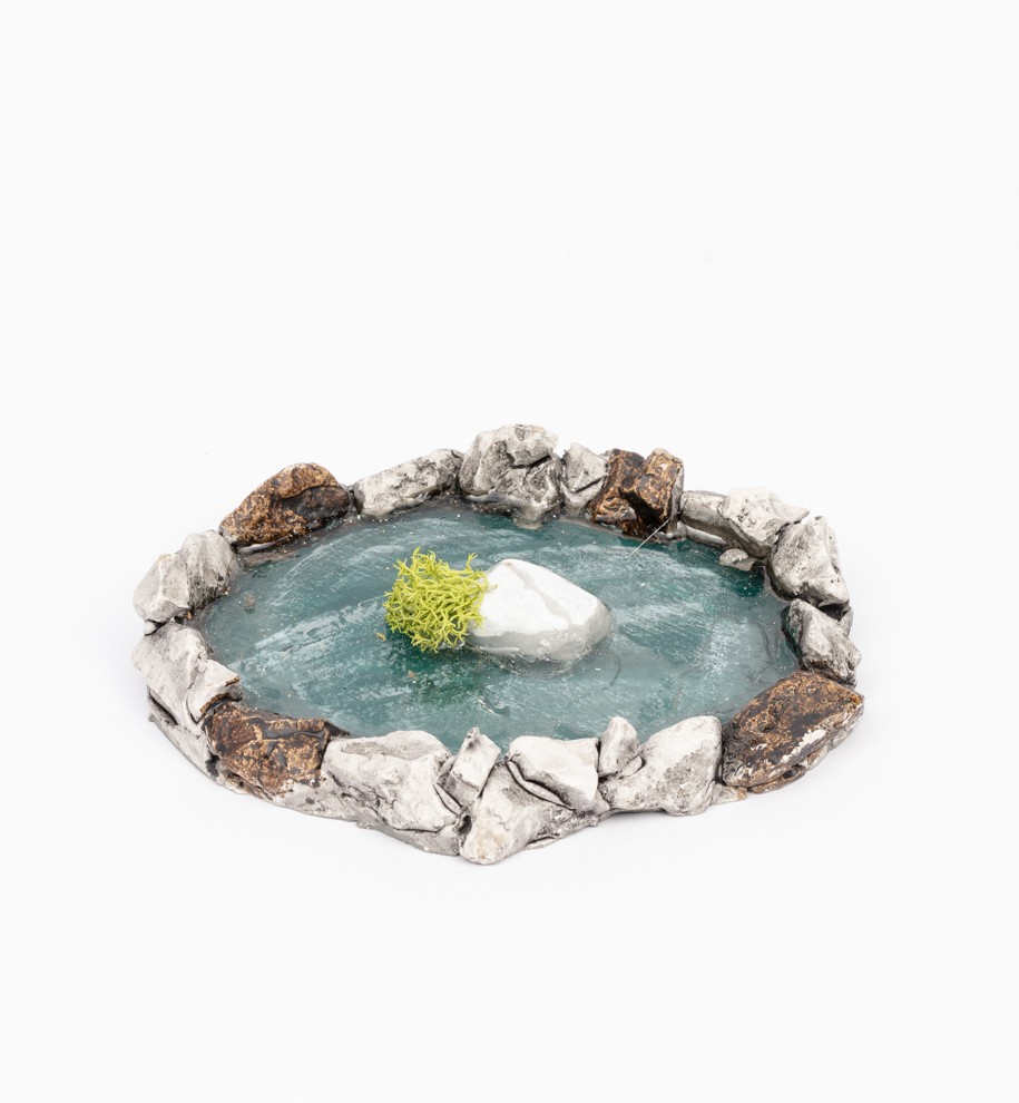Questo laghetto per presepe è un elemento essenziale per creare un paesaggio naturale nella tua scena della Natività. Realizzato in gesso e decorato con muschio, il laghetto è dipinto a mano per aggiungere un tocco di realismo e dettagli unici. Ideale per chi desidera un laghetto che renda la rappresentazione più viva e autentica.